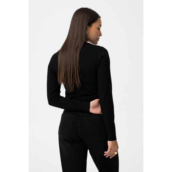 Jersey con cuello redondo y manga larga. Detalle apliques en el cuello con brillantes.