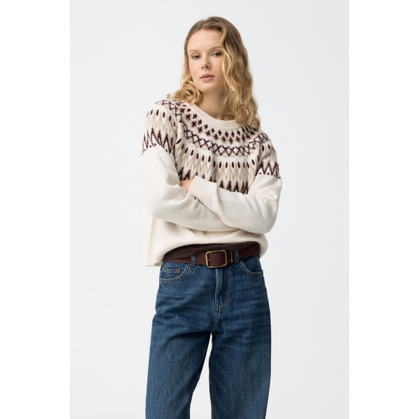 Jersey regular fit con diseño fair isle, cuello redondo y manga larga (Foto).