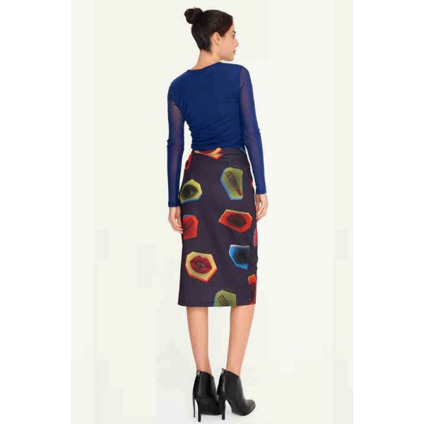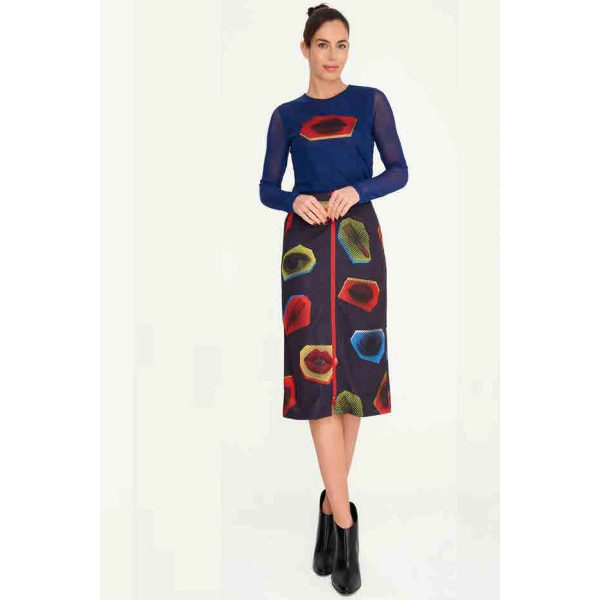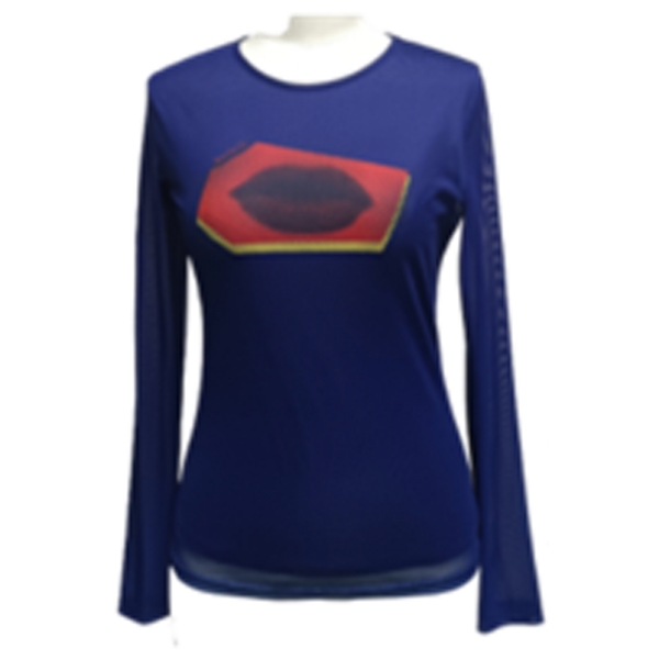 Camiseta de punto elástico, Malalá By Culito From Spain, cuello redondo, manga larga transparente, estampación labios en pecho, familia BLUE POP (Foto).