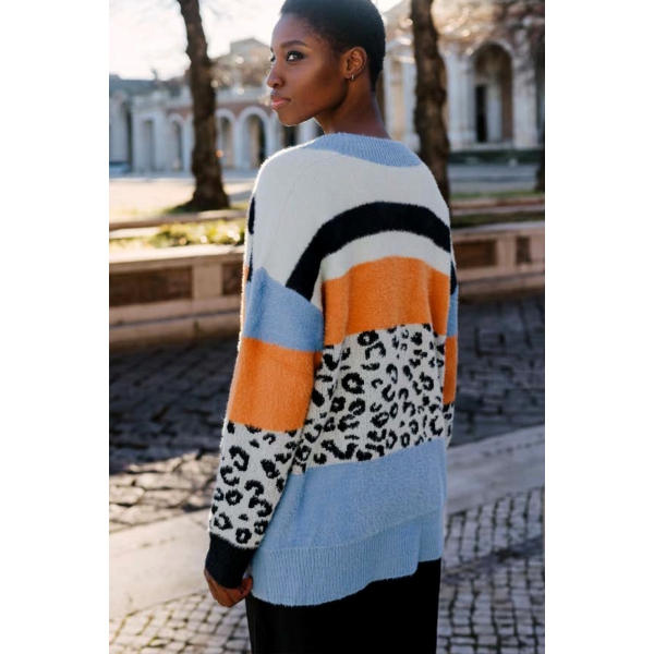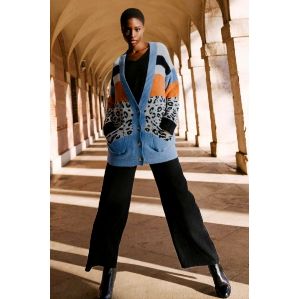 Cárdigan Tricolor Malalá By Culito From Spain, manga larga, estampación familia BLUE POP (Foto).