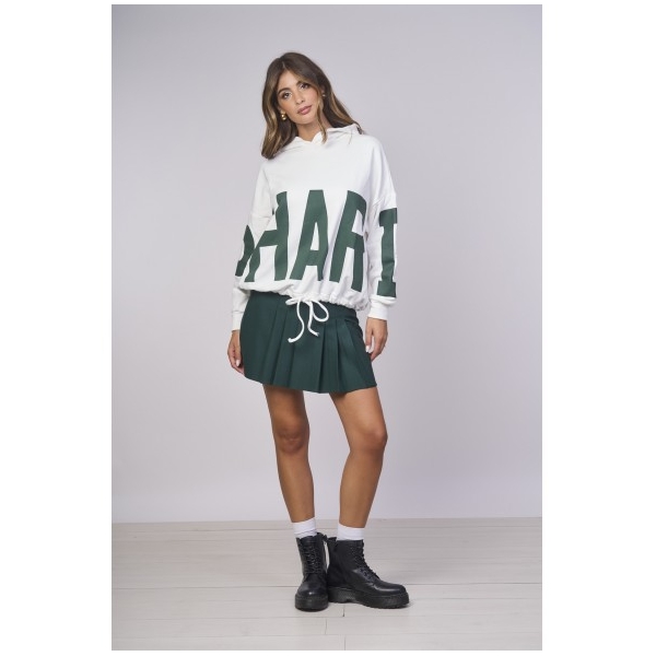 Confeccionada en un tejido suave y cómodo, es ideal para días de relax. Combínala con la falda plisada a juego para un look deportivo y chic o con vaqueros para un look casual y cotidiano.