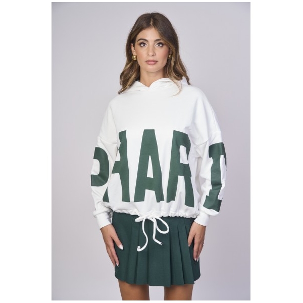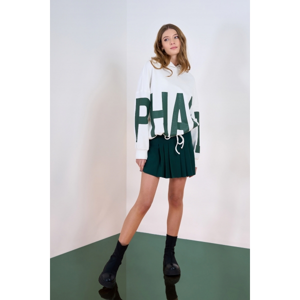 Sudadera corta con capucha, es la prenda perfecta para un look casual y contemporáneo. El gran logo "PHARD" verde la convierte en una prenda llamativa, mientras que el cordón ajustable en la cintura permite ajustar el ajuste (Fotos).