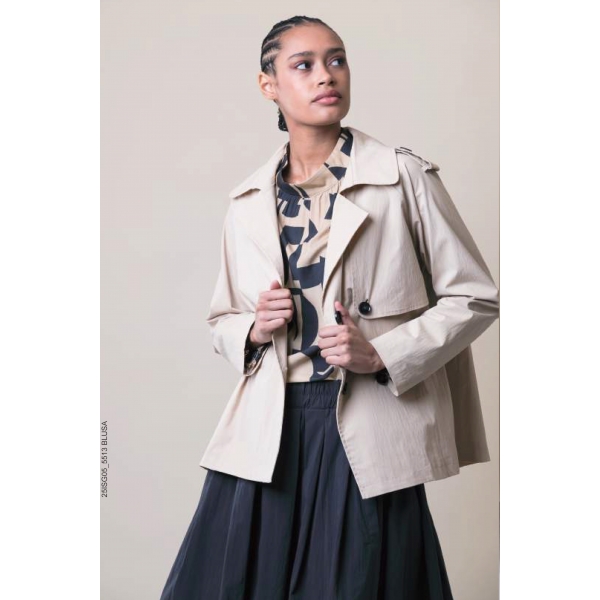 Gabardina corta con solapas ECO, fabricada en España (Foto).