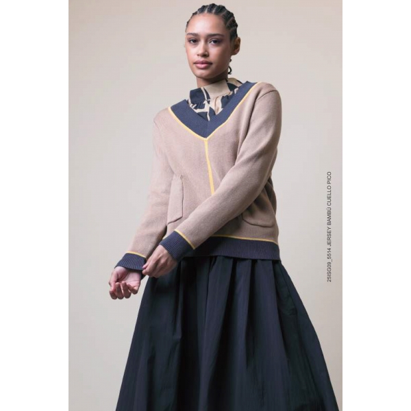 Jersey manga larga, cuello pico, bolsillos, bambú ECO, fabricado en España (Foto).