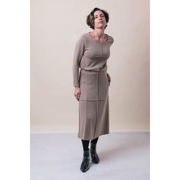 Conjunto de jersey y falda larga de punto elástico ECO, fabricada en España, costuras (Foto).