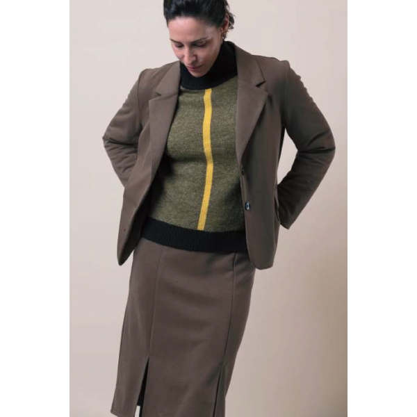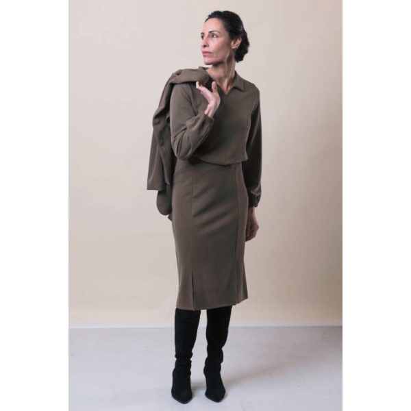 Falda tubo ECO, largo midi, fabricada en España, con costuras y aberturas (Foto).