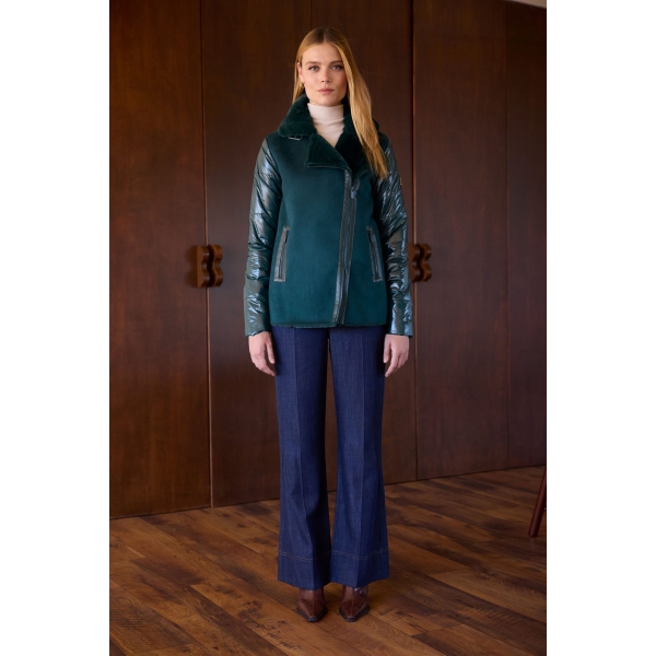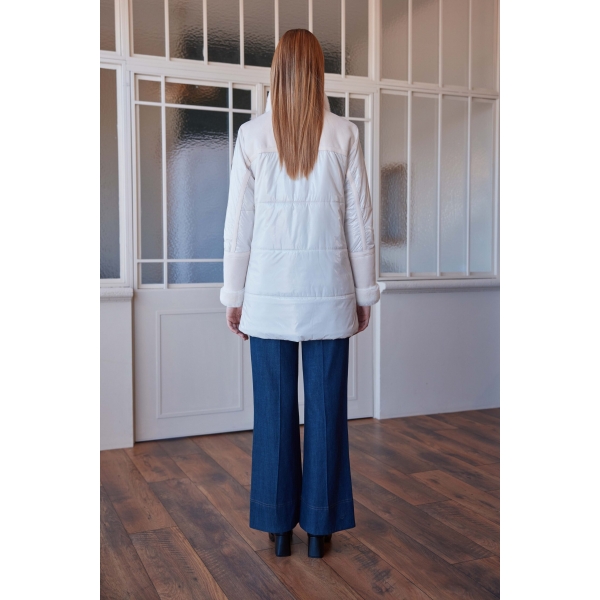Jeans con lazo en cintura, ligero y cómodo. Jersey manga larga combinado con botones (foto).