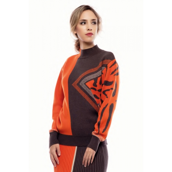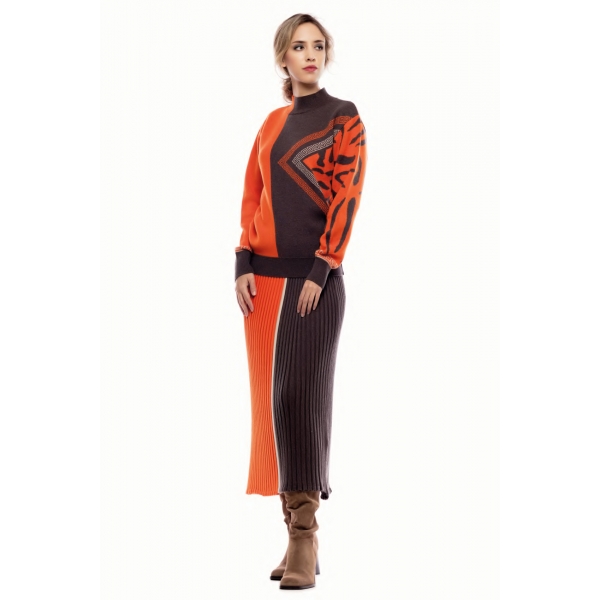 Jersey de punto, cuello perkin, bicolor, divertido, diferente y fabricado en España. Combínalo con la falda Lia (Foto).