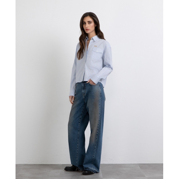 Camisa de algodón con rayas y bolsillos. Cierre de botones ocultos (fotos).