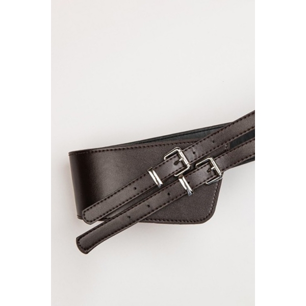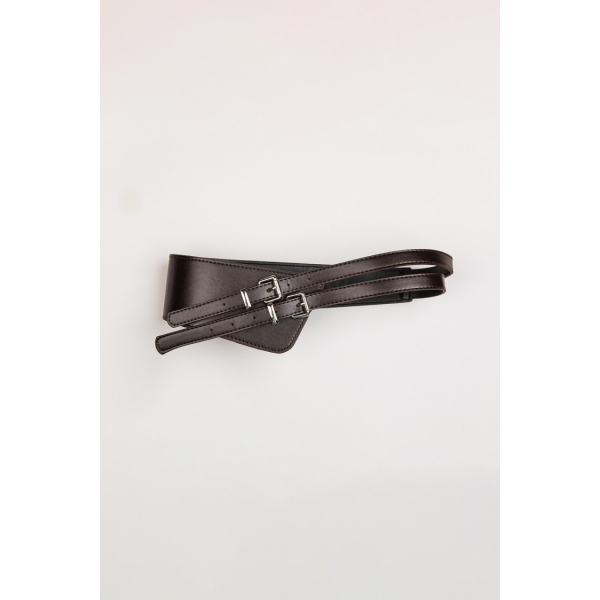 Cinturón doble polipiel asimétrico y hebilla metálica (Foto).