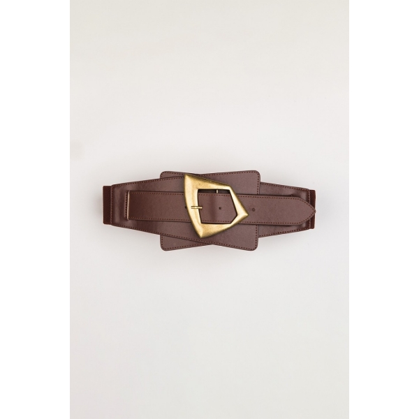 Cinturón polipiel asimétrico y hebilla metálica (Foto).