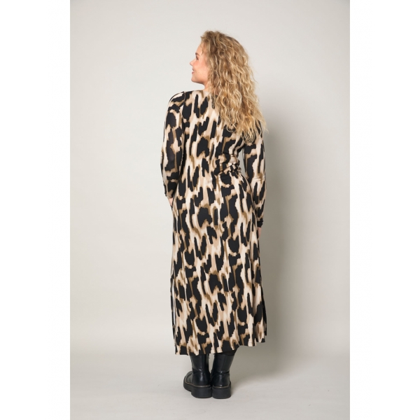 Vestido midi estampado con bolsillos, aberturas laterales, escote redondo y manga larga. Tejido de punto viscosa para una caída y comodidad excepcionales (Foto).