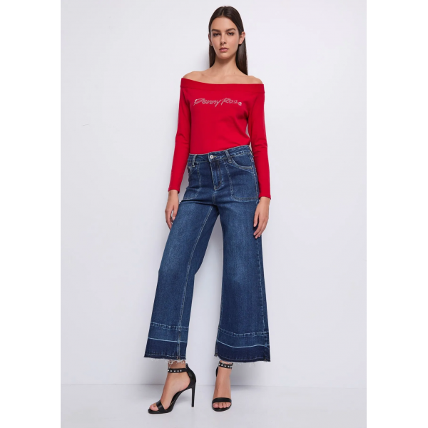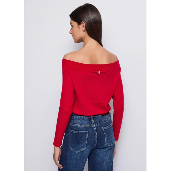 Jersey de mezcla de viscosa, logotipo de diamantes de imitación en el frente, fuera del hombro, mangas largas y logotipo metálico DR en la parte posterior (Fotos).