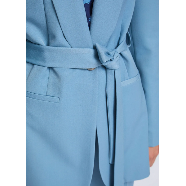 Traje Blazer de mezcla de viscosa elástica, solapas de chal, bolsillos ribeteados en los laterales, cinturón a juego, dije con diamantes de imitación, cierre de un solo botón, forro interior. Pantalón capri, pliegue planchado, bolsillos de cadera, bolsillos ribeteados en la parte trasera, dije con diamantes de imitación, cierre de cremallera oculta (Fotos).