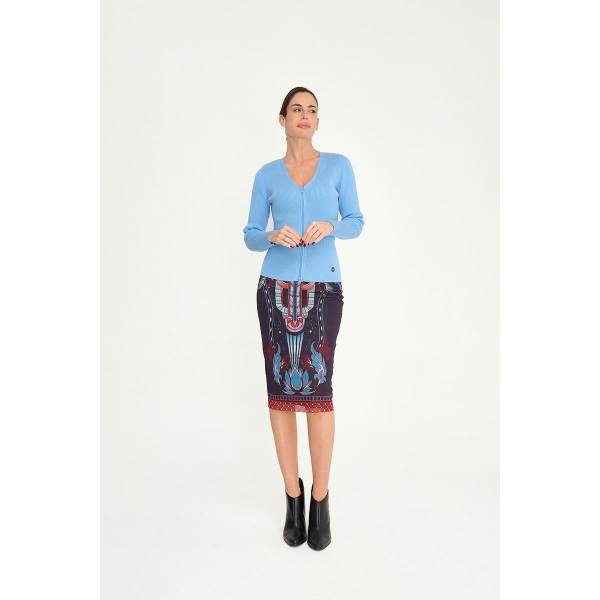Falda largo rodilla, Malalá By Culito From Spain, con estampación azul BLUE POP (Foto).