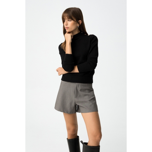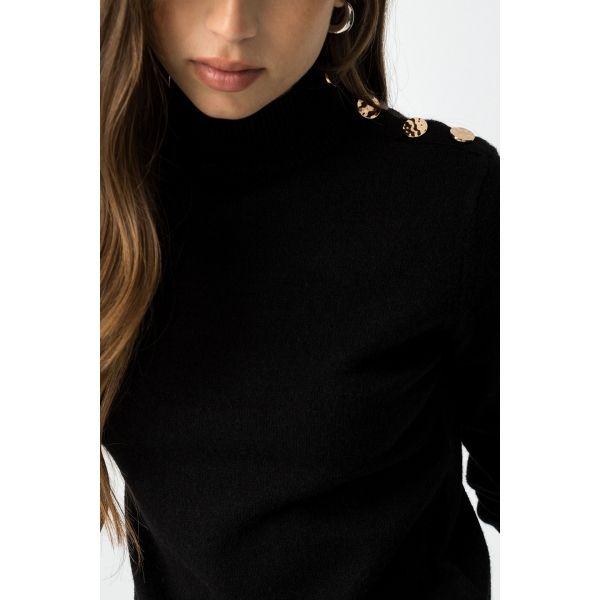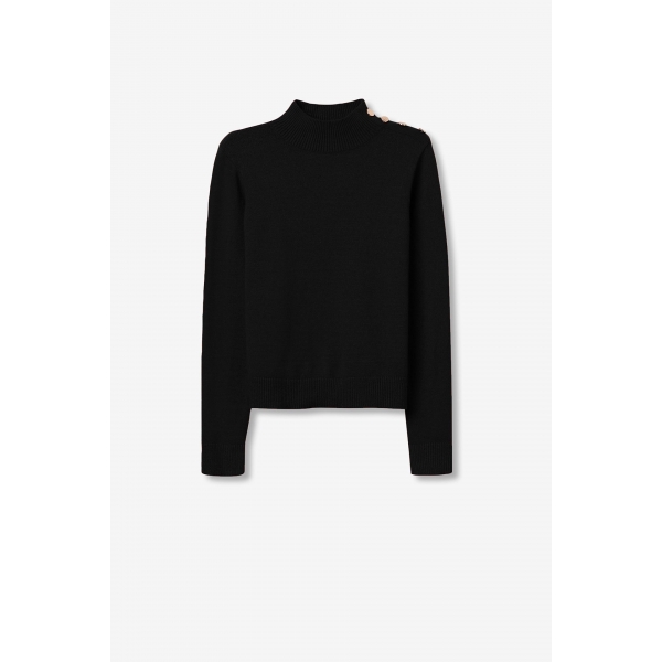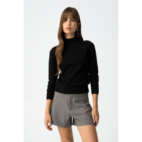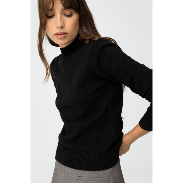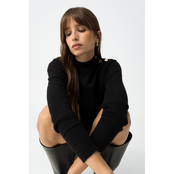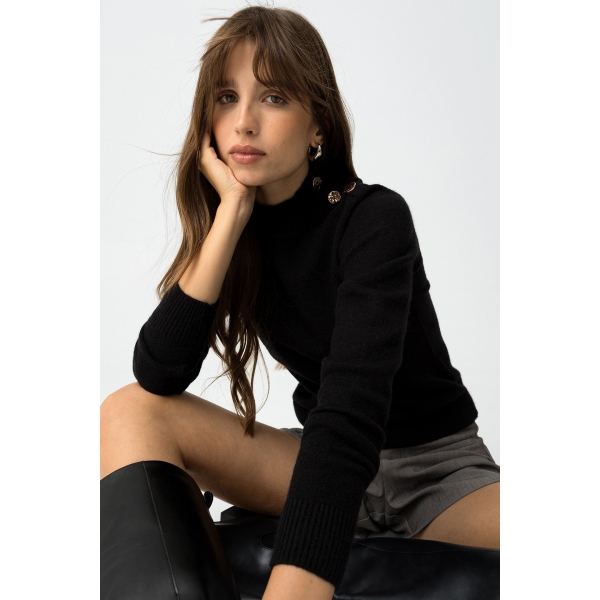 Jersey slim fit con botones metálicos en los hombros, cuello alto y manga larga (Fotos).