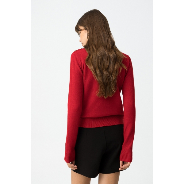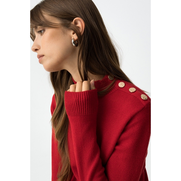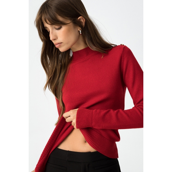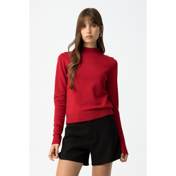 Jersey slim fit con botones metálicos en los hombros, cuello alto y manga larga (Fotos).