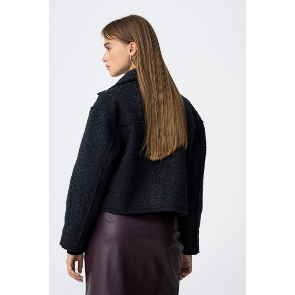 Chaqueta corta bouclé, relaxed fit, con dos bolsillos de ribete delanteros, cuello, abertura frontal con cierre de cremallera y manga larga (Fotos).