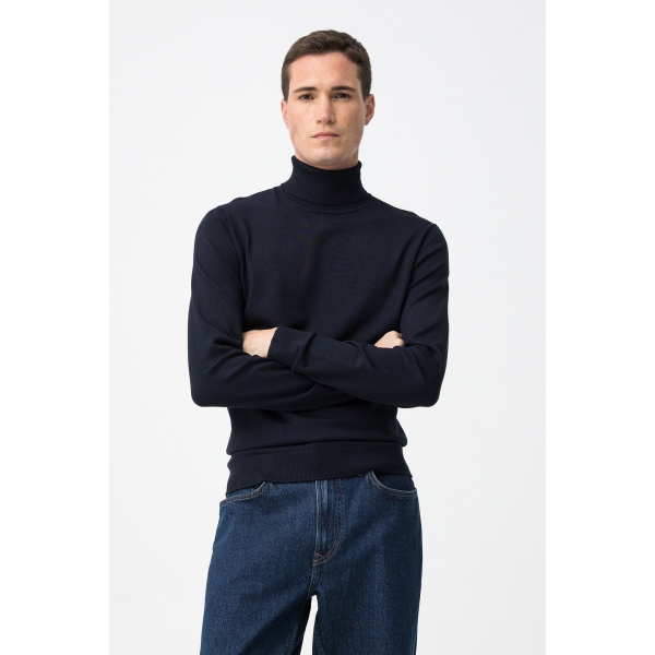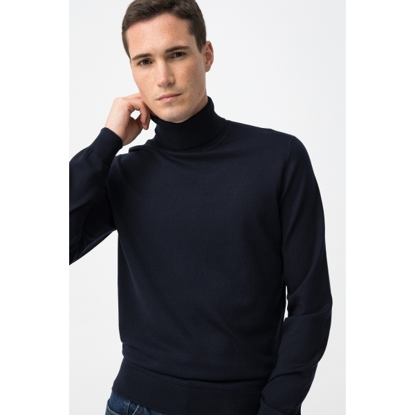 Jersey de cuello alto, manga larga, acabados en canalé (Foto).