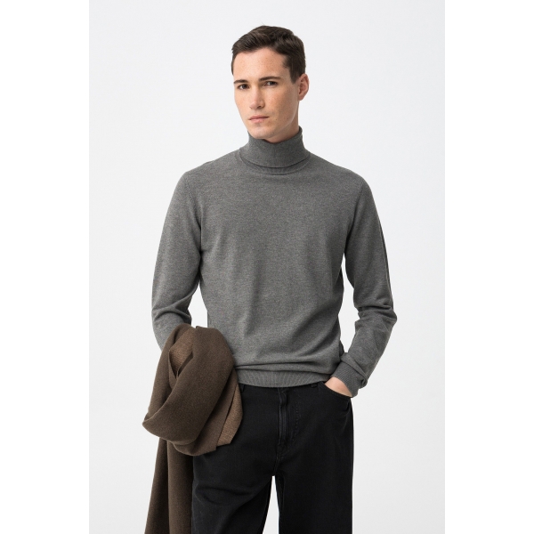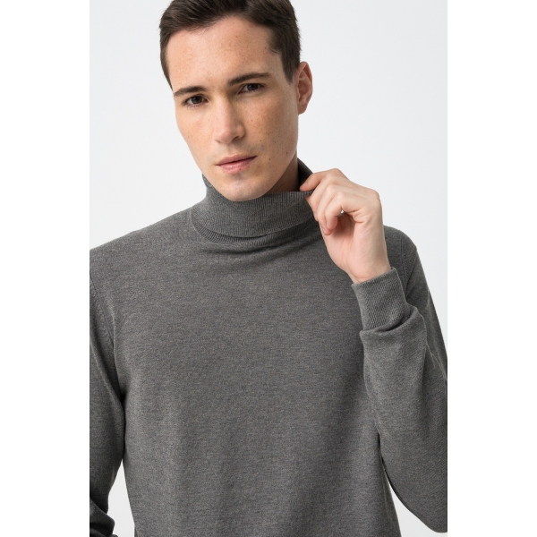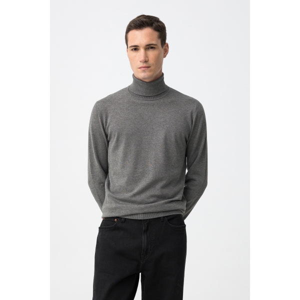 Jersey de cuello alto, manga larga, acabados en canalé (Foto).