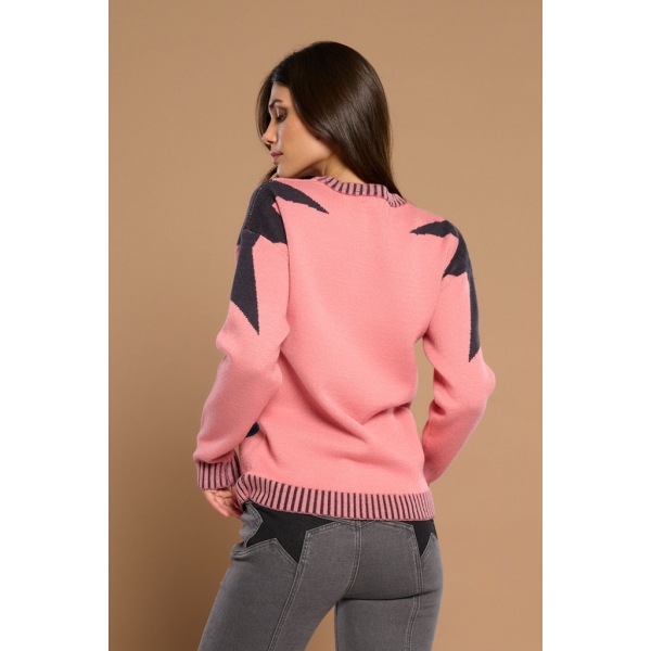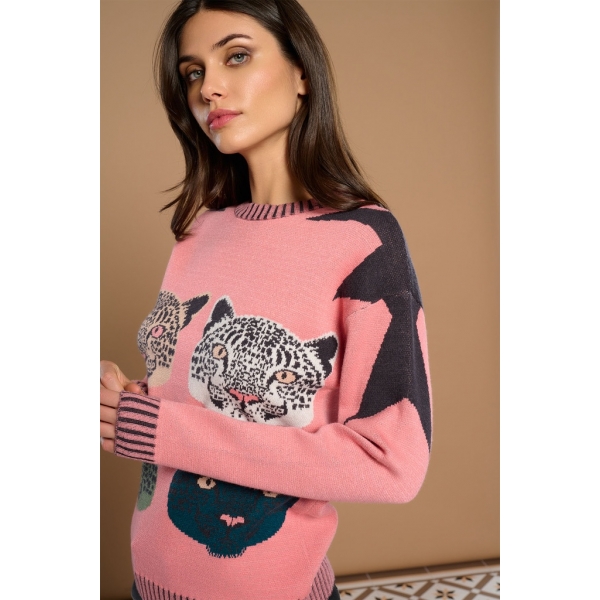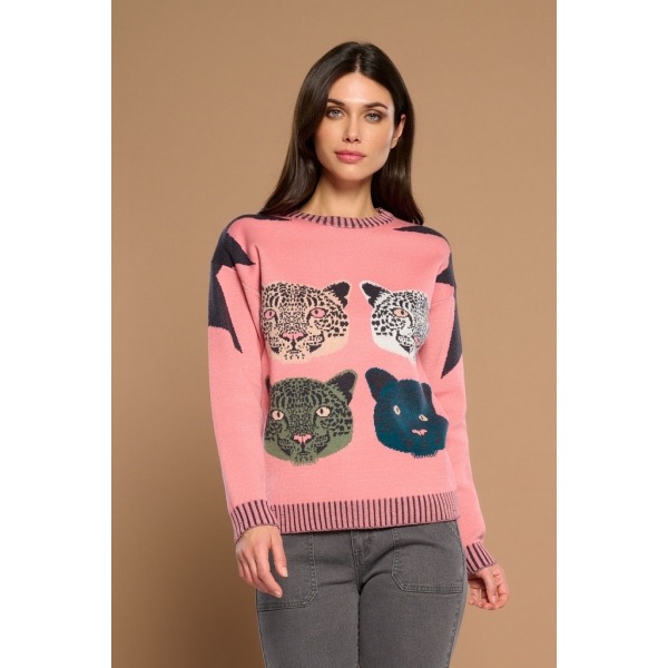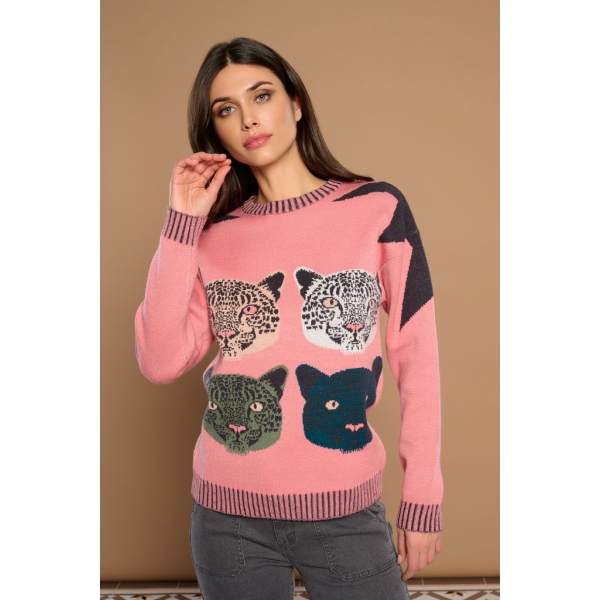 Jersey de punto con cuello redondo, manga larga, ribete en cuello, cintura y mangas. Estampado guepardo (Foto).
