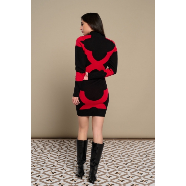 Vestido de punto elástico con cuello y puños en ribete (Foto).
