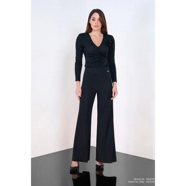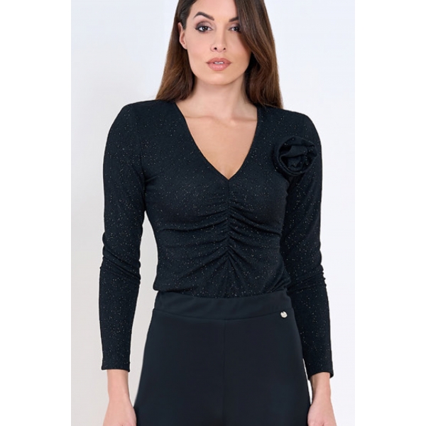 Jerse cuello pico, manga larga, tejido suave, entallado y frunzido (Fotos).