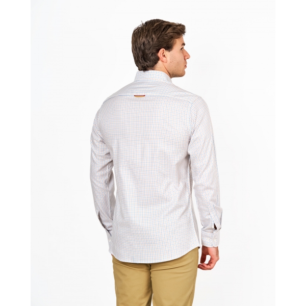 Camisa viyela 0025 de manga larga, 100% algodón con un estampado de cuadros sutil y fresco. Logo bordado al pecho (foto).