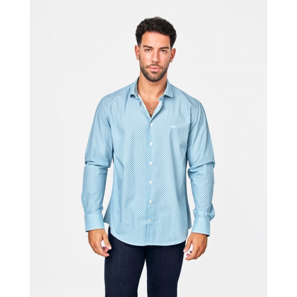 Camisa popelin 0498 de manga larga, 100% algodón con un estampado sutil y fresco. Logo bordado al pecho (foto).