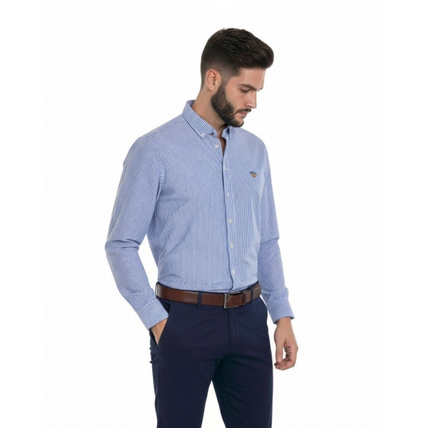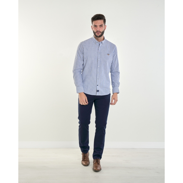Camisa con botón bandera popelín listas (foto)