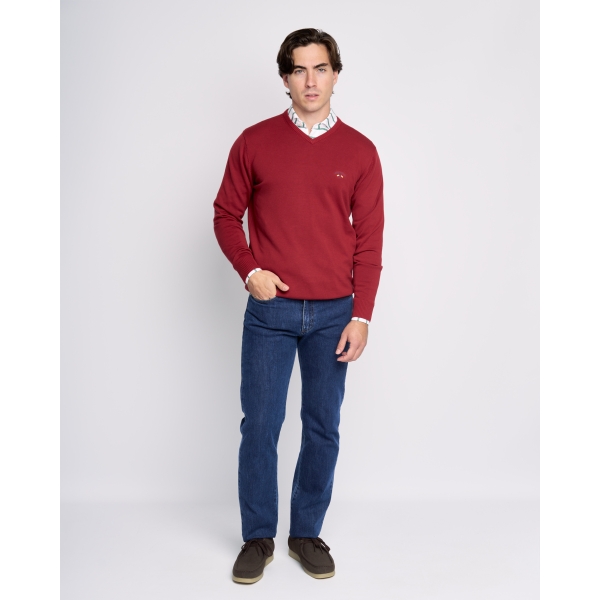 Jersey 0002 básico, cuello pico, manga larga, color liso con logo, confeccionado en 100% algodón (Fotos).