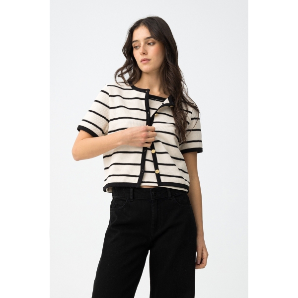 Jersey tirantes más chaqueta manga corta de punto, corte regular fit, rayas horizontales (Fotos).