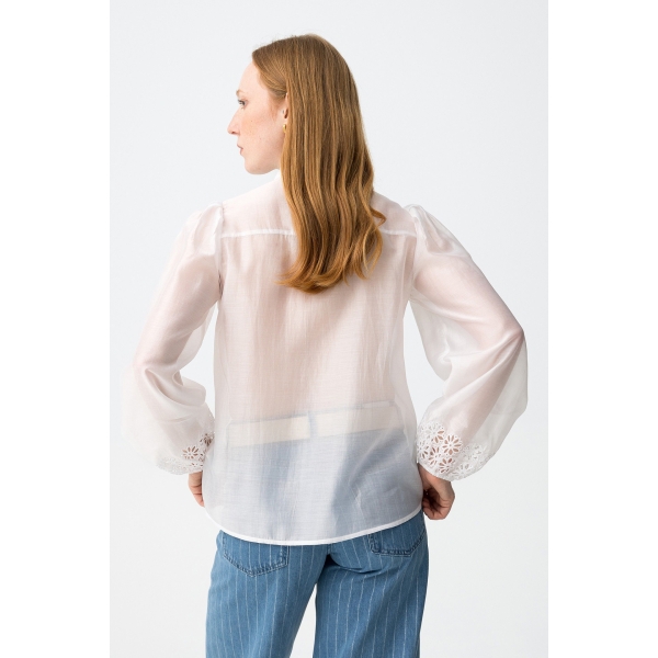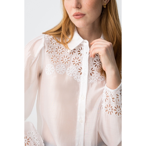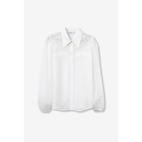 Camisa bordado de flores, cierre de botón, manga larga, puños engomados (Foto).