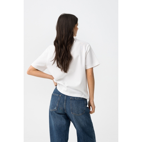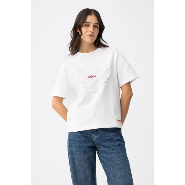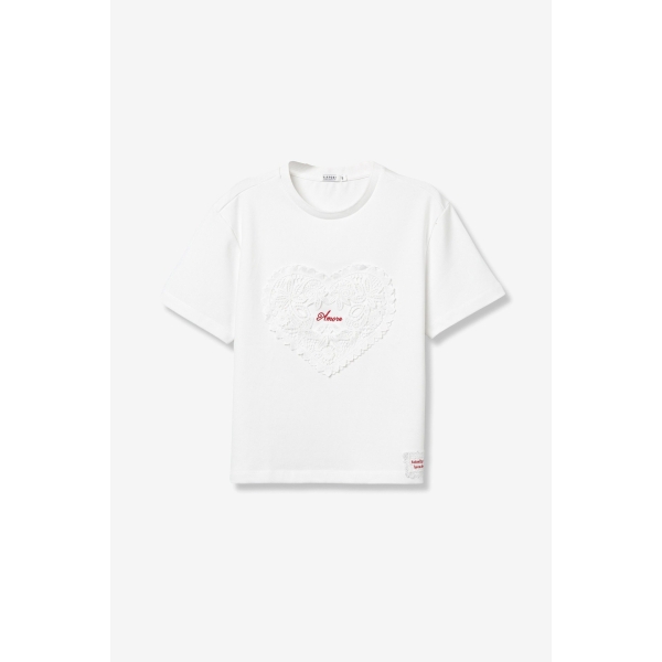 Camiseta de manga corta, blanca de corte relaxed y corazón en relieve con detalle bordado delante (Foto).