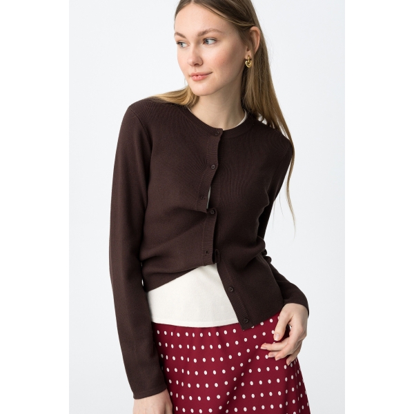 Chaqueta punto, manga larga y cierre frontal con cinco botones (Foto).